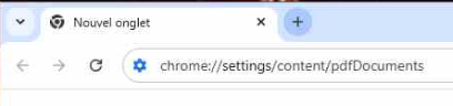 - Dans la barre d'adresse, copiez et collez ceci : chrome://settings/content/pdfDocuments